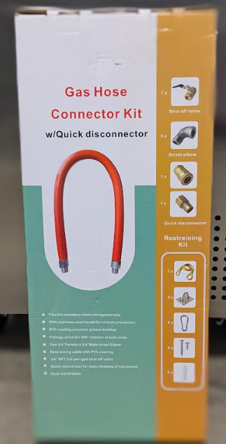 View full detailsHeavy-Duty Gas Hose 48" Length Gas Hose Connection Kit W/ 3/4" Diameter Packaged In Point-Of-Purchase Display Box Includes | (1) Shut-Off Valve (1...